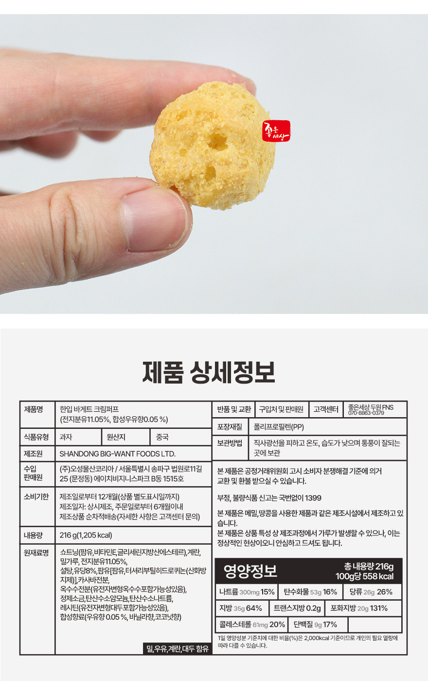 [좋은세상] 한입바게트 크림퍼프 바삭한 홈런볼 216gx2개