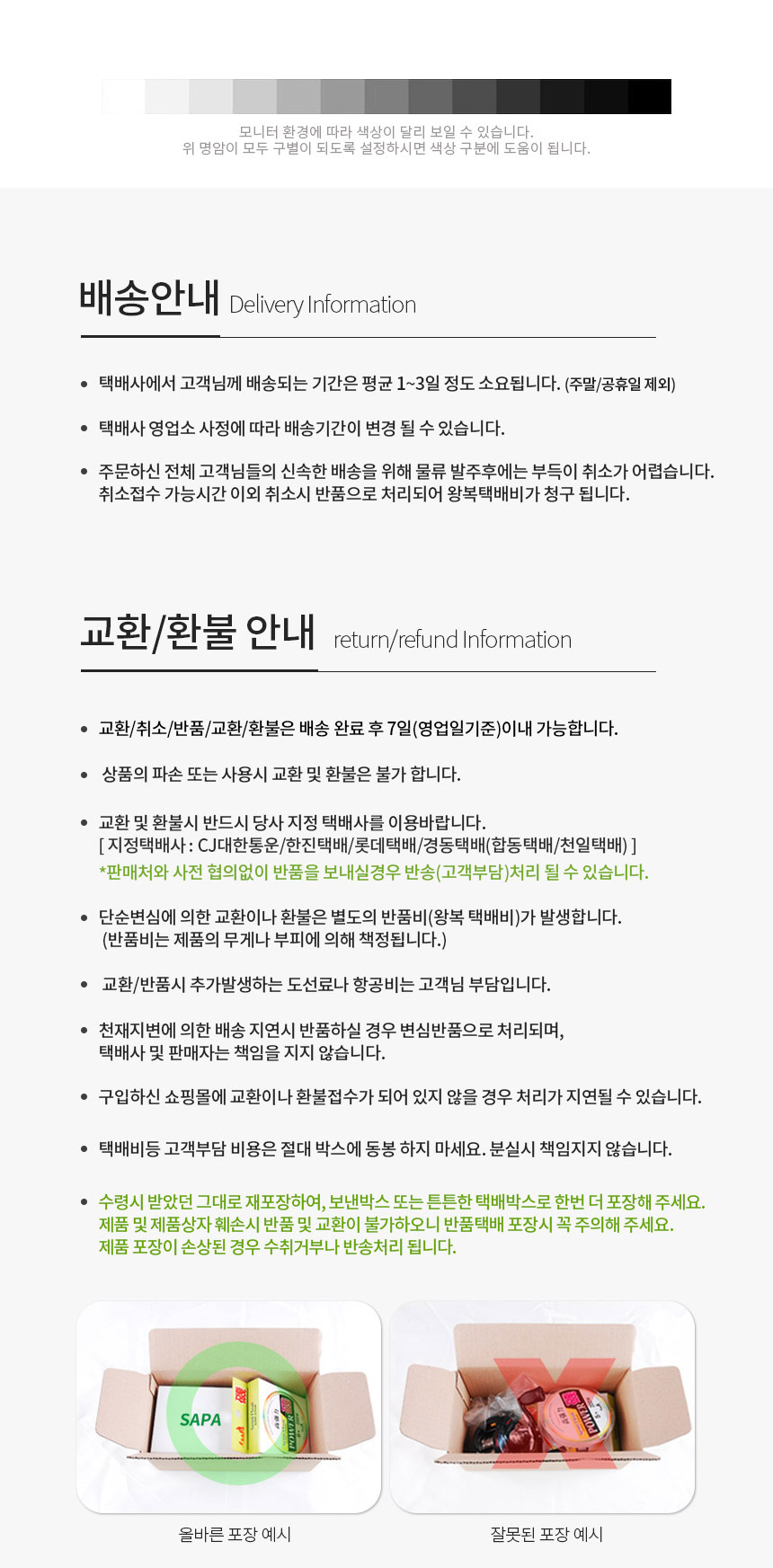 세탁방법 및 취급시 주의사항 제품 상세정보 참고